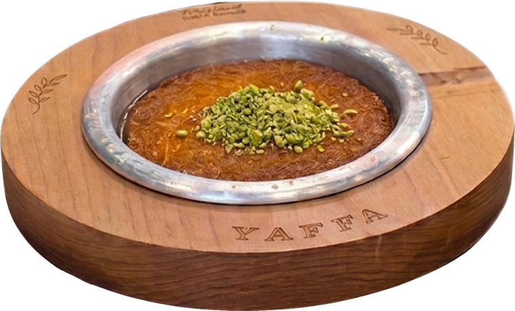 Golden, crispy, and irresistibly rich, our signature kunafa is the indulgence everyone talks about. Prepared fresh by our team with care and attention to every detail, and rooted in Palestinian tradition, it features delicate crispy layers, soft melted cheese, and a light drizzle of syrup that brings out its authentic flavor. Paired with a perfectly crafted coffee or a warm sweet drink, every bite becomes a moment of pure comfort and pleasure. This isn’t just a favorite… it’s an experience you’ll keep coming back for.